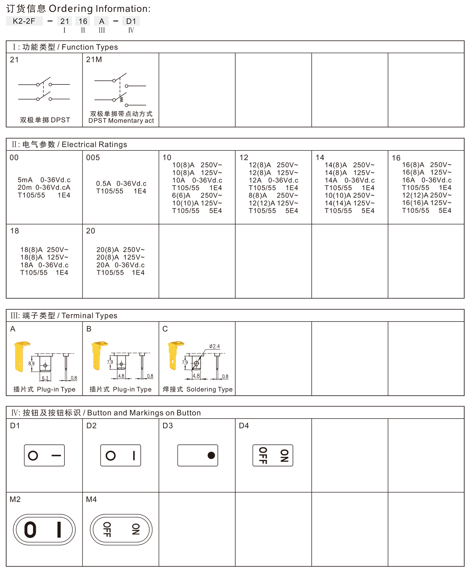 K2-2F series Rocker Switches