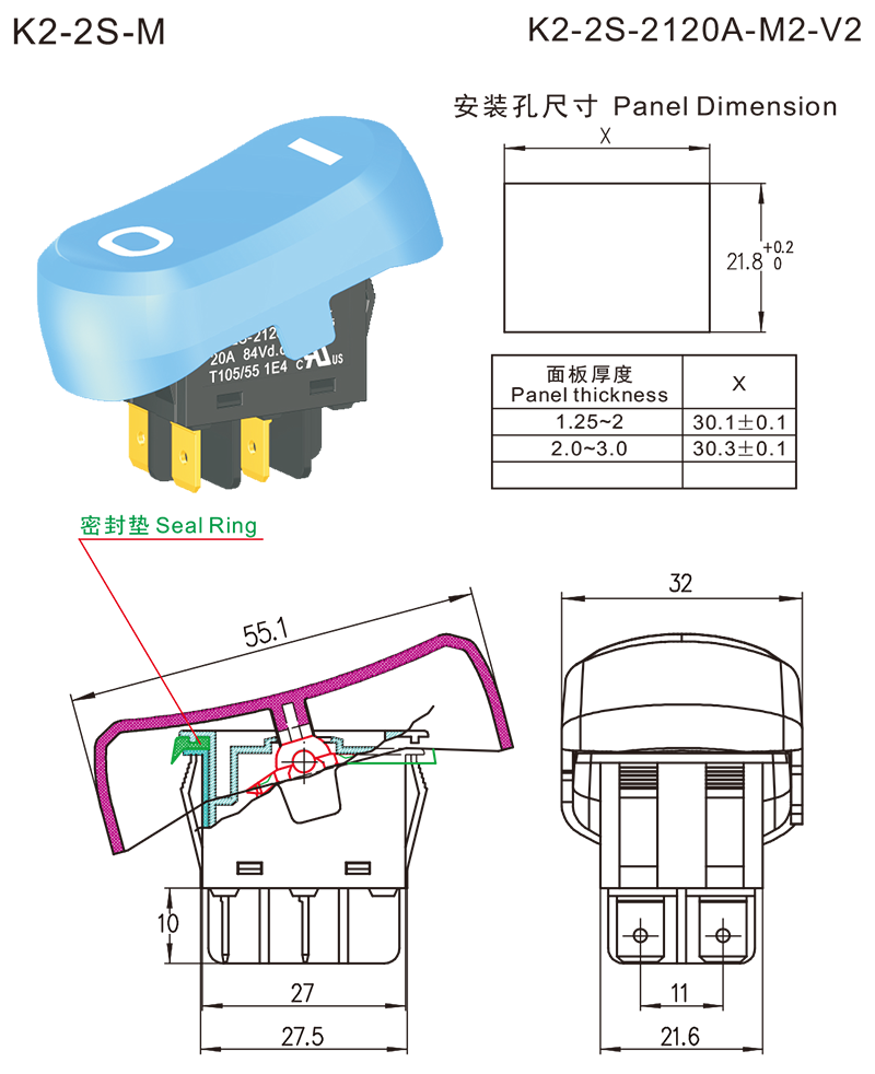 K2-2S(防尘防水)高额定值跷板开关