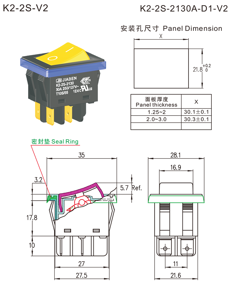 ◆K2-2S series are one standard type rocker switches, optional many kinds of types, optional with Protection Cap for dustproof and waterproof, or with Inner Protection Structure for dustproof and waterproof, specially for used in DC high rated power tools and gardening tools such as: Cordless Bench Grinders, Cordless Electric Lawnmowers, Cordless Electric High Pressure Washers, etc. Also for used in AC or DC Electric Welder, etc.