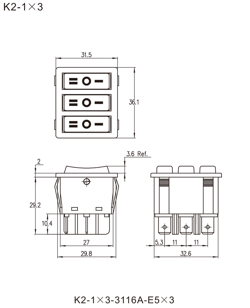 K2-3 series (Dustproof and Waterproof) Rocker Switches