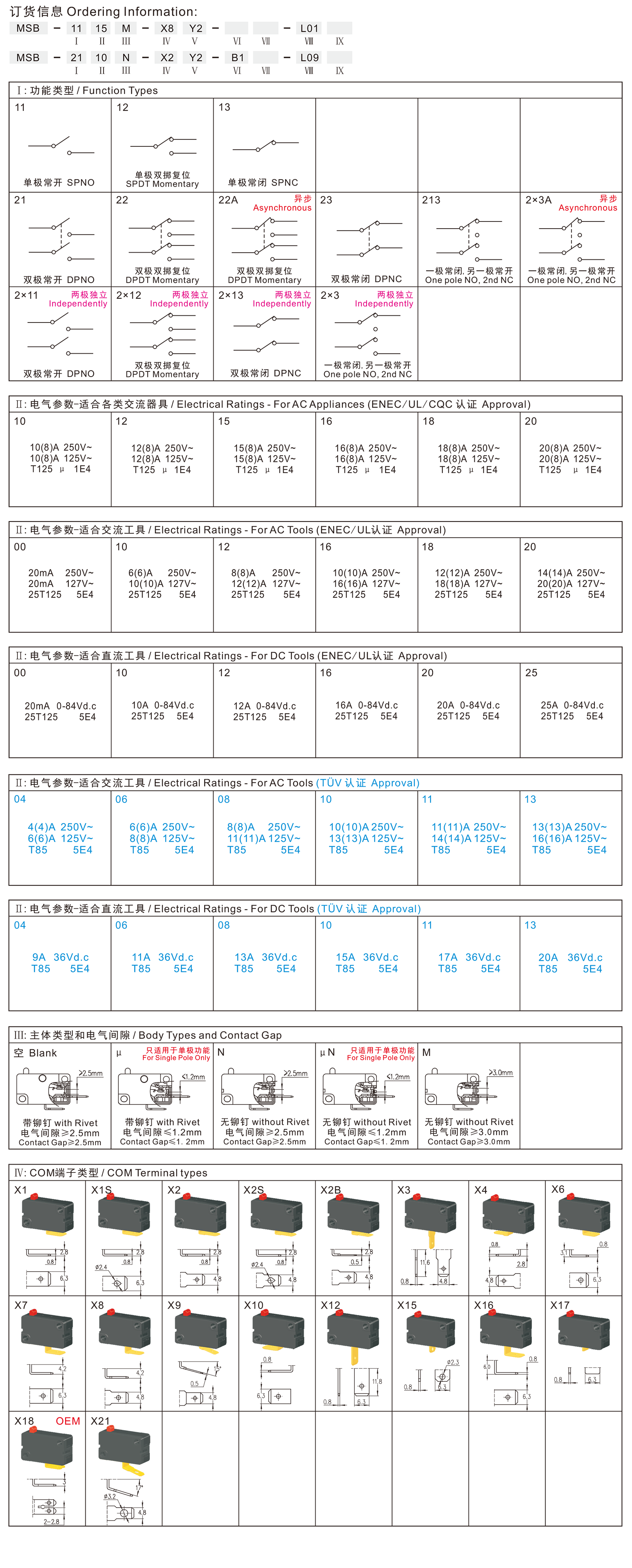 ◆MSB series are one standard micro switches, optional micro contact gap (1mm), 2.5mm and 3.0mm contact gap, commonly for used in all kinds of power-tools and gardening tools, such as Cut-off Machines, Miter Saws, Electric Chain Saws, Grass Trimmers, Hedge Trimmers, Electric Screw Drivers, Electric Nailers, Electric Sprayers, High Pressure Washers, etc. Also for used in home appliances and office equipments, such as Paper Shredders, Microwave Ovens, Pumps Ball Cock Switches, Game Control Handles, Door Switches, etc.