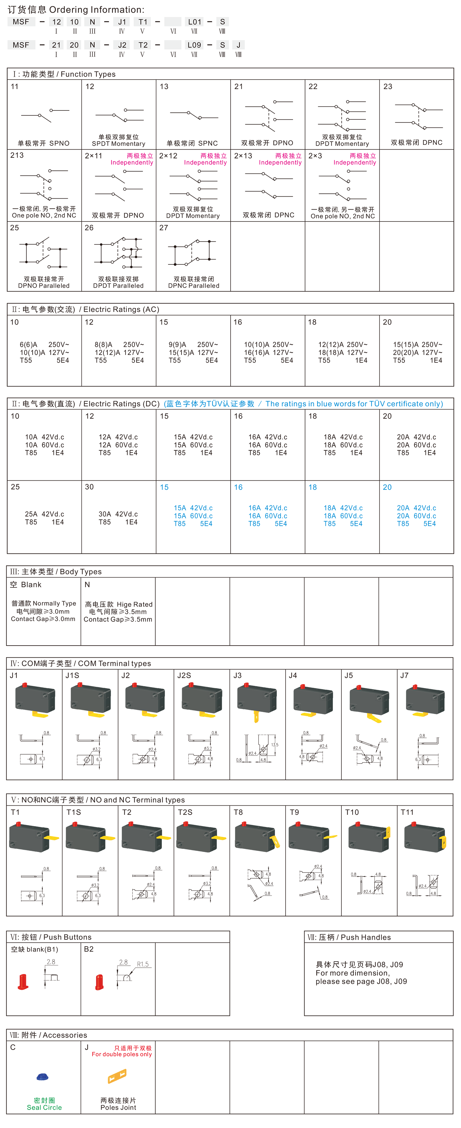 MSF series are one standard micro switches, contact gap≥3.0mm, optional with Seal Ring for dustproof, the voltage up to 60Vd.c, specially for used in high rated DC power-tools and DC gardening tools,such as 18V up DC Angle Grinders, 18V up DC Grass Trimmers, 18V up DC Electric Chain Saws, 18V up DC Blowers, 18V up DC Hedge Trimmers, 18V up DC Multi-head Tools, etc.
