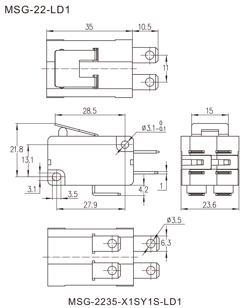 →开关内部触点间隙Contact gap range≥3.0mm