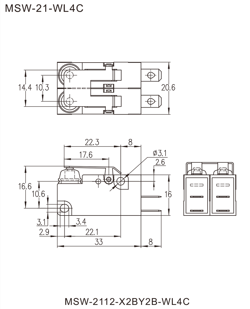 MSW series proof and Waterproof Micro Switch (Leaf Spring Type)
