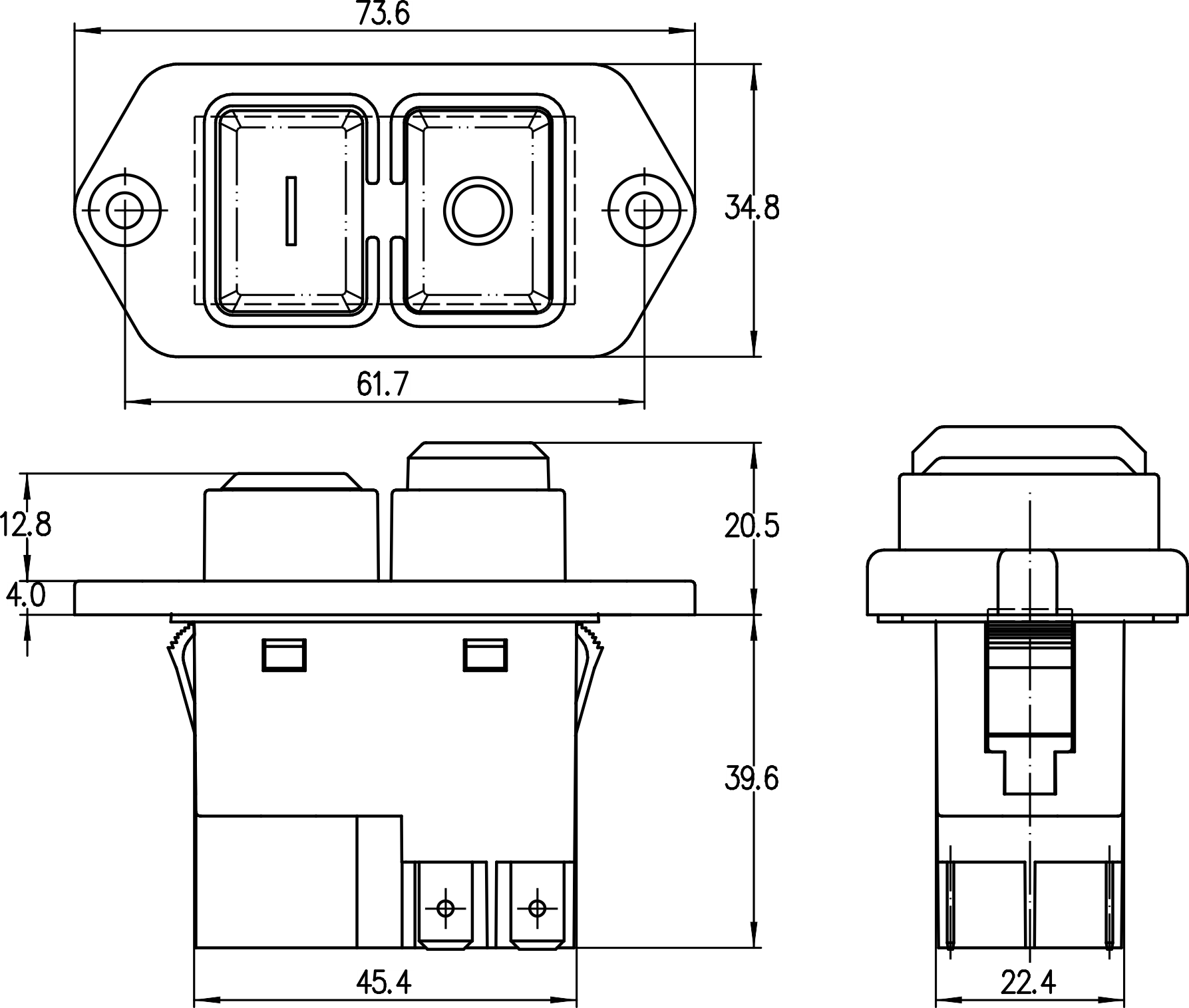 →插片端子 Plug-in terminals 6.3×0.8mm