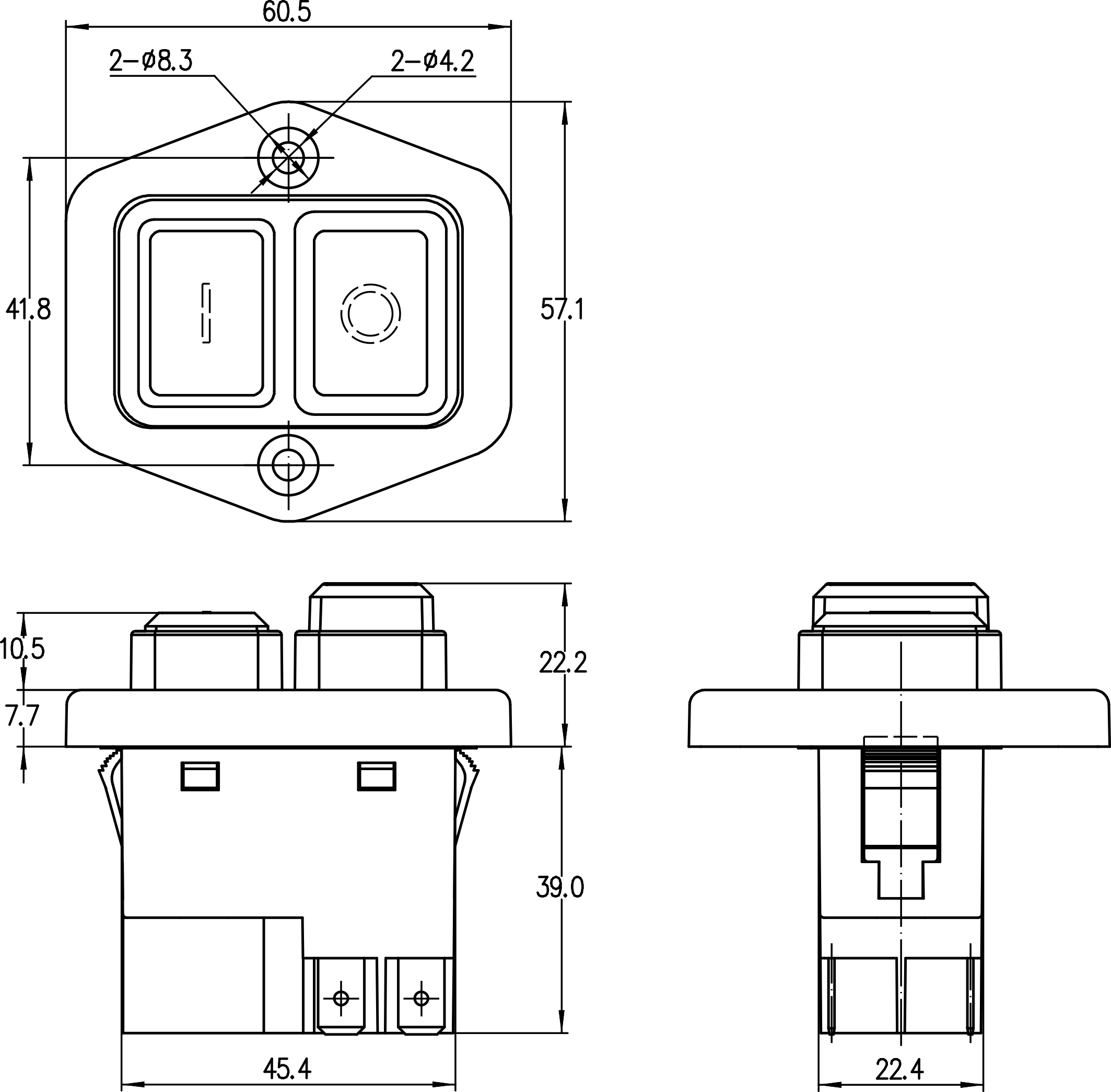 →插片端子 Plug-in terminals 2.8×0.8mm