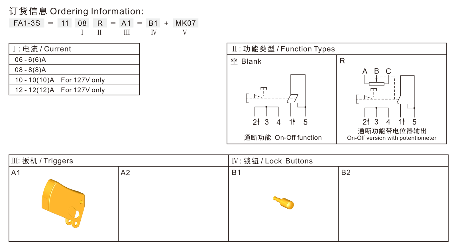 ◆FA1-3S series are special type trigger switches, integrated dustproof, optional with MK07 PCB Assembly, for popular used in portable power-tools such as: 150mm Angle Grinders, Polisher Grinders, etc. The trigger and lock button can be make according to customer's request.