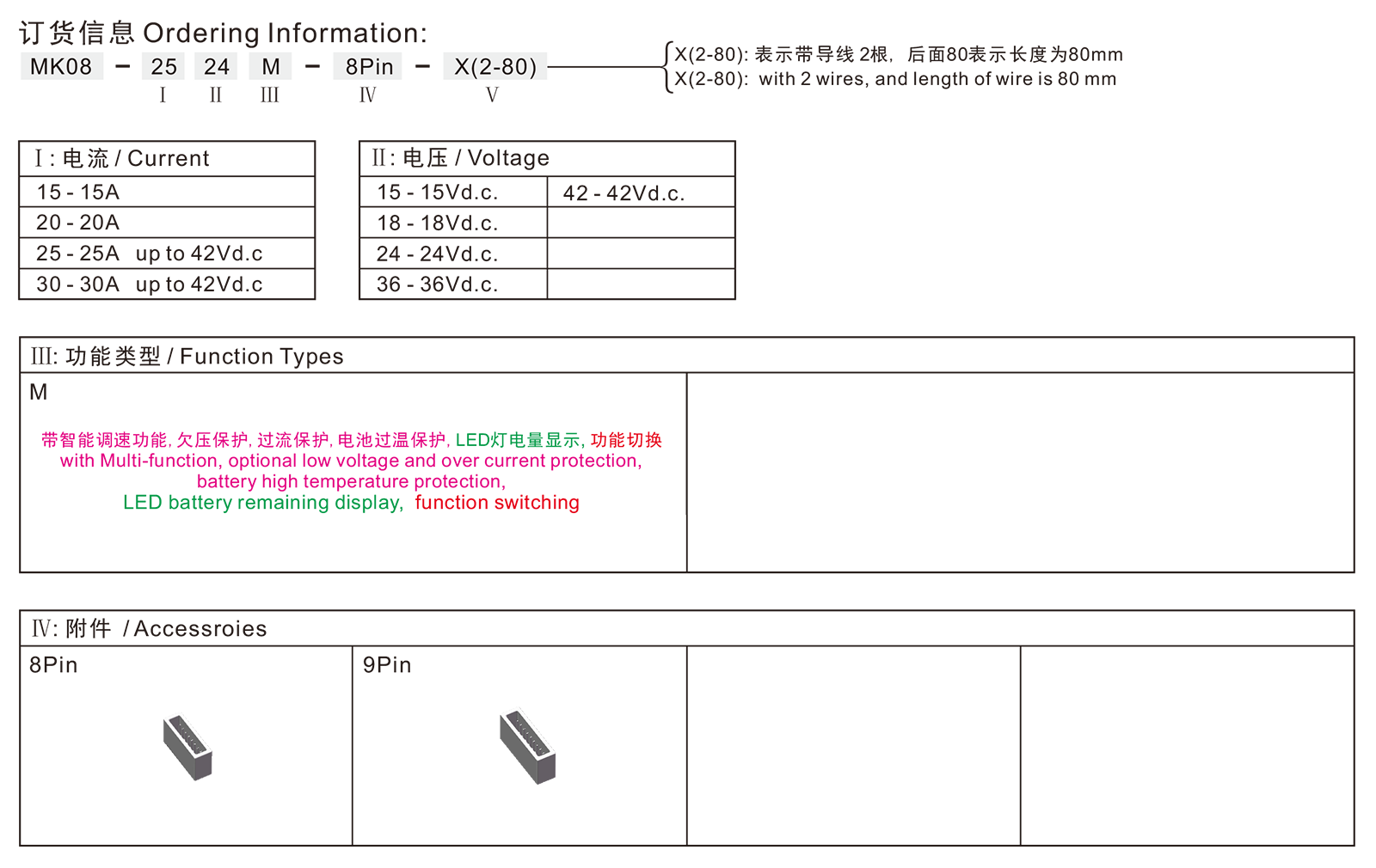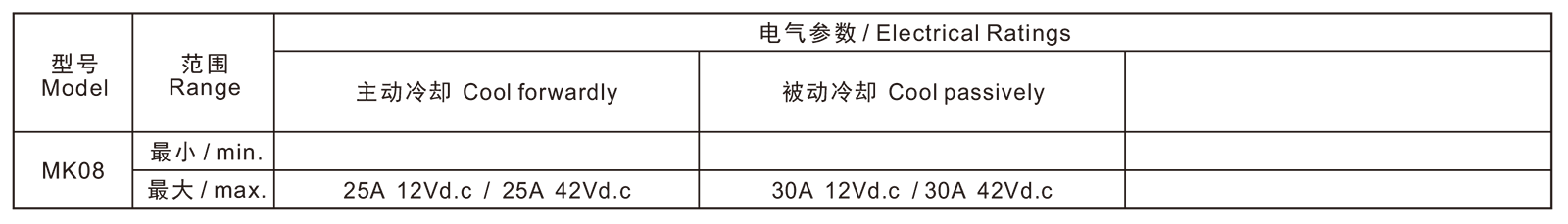 →最大电流 Max. current at 42Vd.c25A
