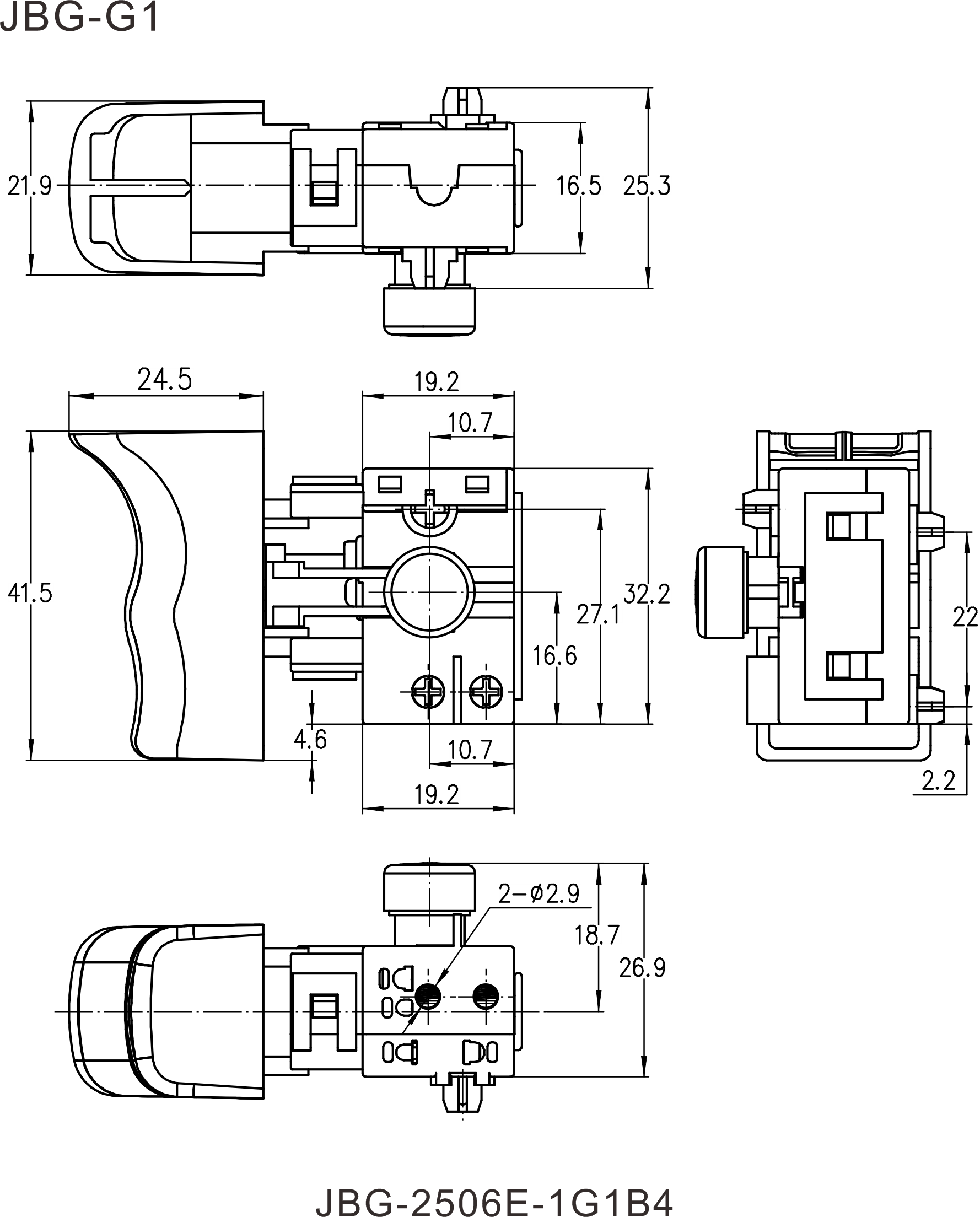 JBG series are one mini-type variable speed trigger switches, integrated dustproofwith compact size, the handle of tools can be designed to more fine. For popular used in portable power-tools such as: Drills, Impact Drills, Rotary Hammers, Jig Saws, Reciprocating Saws, Sabre Saws, Electric Mixers, Polishers, Orbit Sanders, etc.