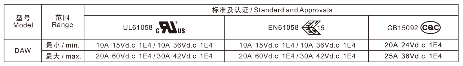 电气参数和认证 Electric Rating and Certification