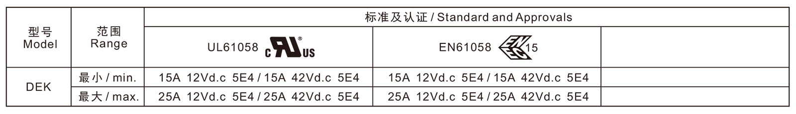 →最大电流 Max. current at 42Vd.c25A