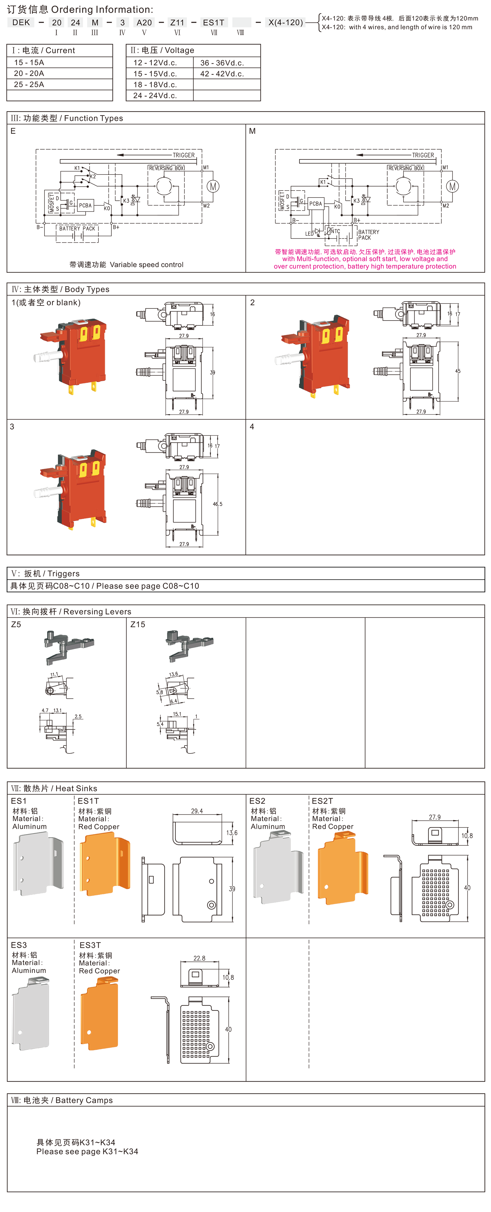 ◆开关输出端的平均电压为总电压的8-50%至8-90%,也可以按客户要求进行定制,开关按到底由直通接点接至电池端电压.