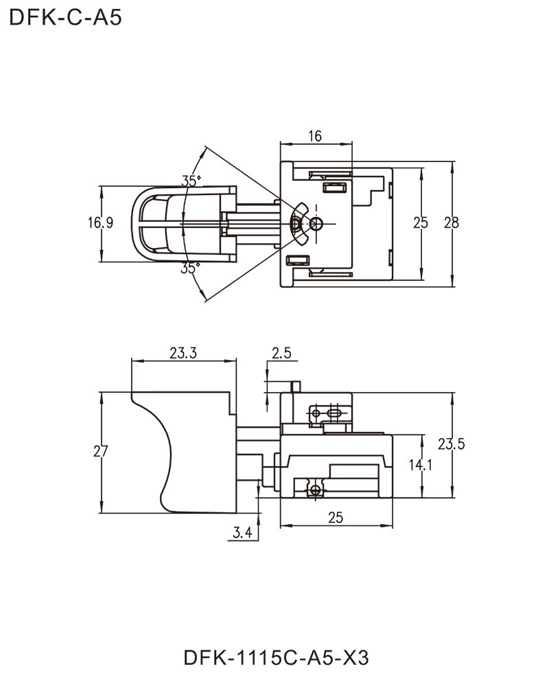 ◆DFK系列是一款通用型的直流扳机开关,集成防尘功能和机械刹车接点,应用于各类直流充电式手持电动工具和园林工具,如:充电式电钻、充电式电锤、充电式螺丝起子、充电式冲击扳手、充电式吹吸机、充电式打草机等。