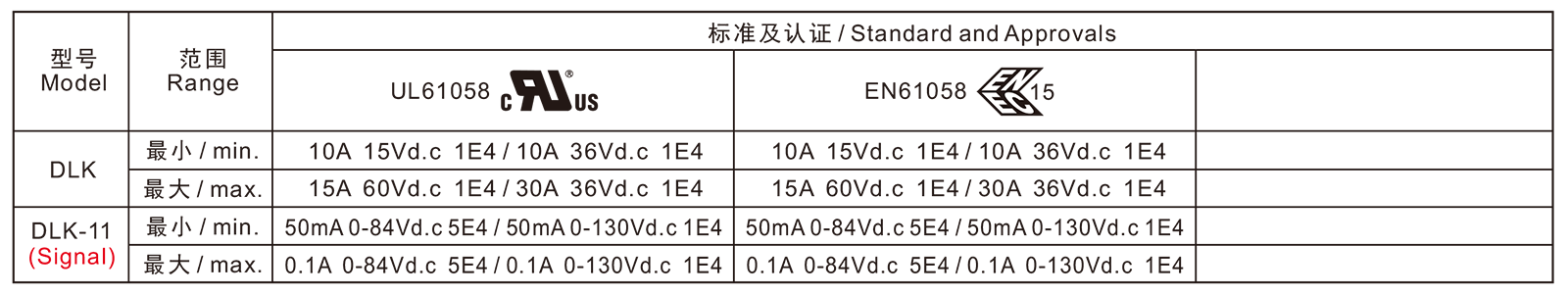 电气参数和认证 Electric Rating and Certification