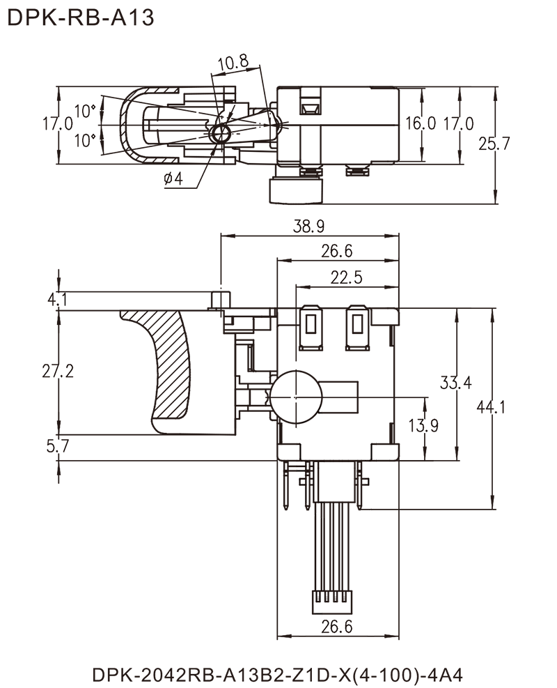 ◆DPK系列是一款通用型的直流扳机开关,集成防尘和机械刹车接点,内部带换向结构,应用于各类直流充电式手持电动工具,如:充电式电钻、充电式电锤、充电式电圆锯、充电式螺丝起子、充电式冲击扳手等,也可应用各类直流无刷电动工具。