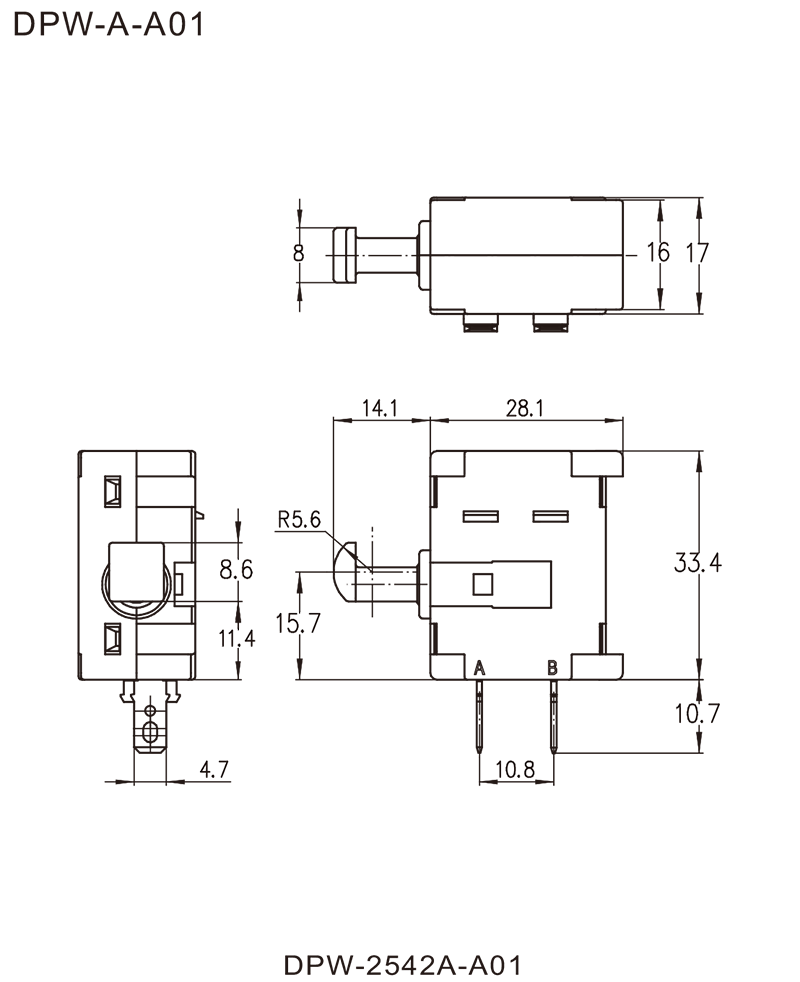DPW系列是一款通用型的直流扳机开关,集成防尘快速刹车接点,应用于需要快速刹车的直流充电式手持电动工具,如:充电式电圆锯、充电式往复锯、充电式电链锯等。