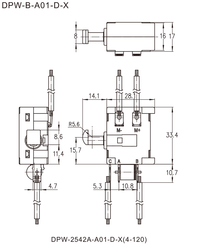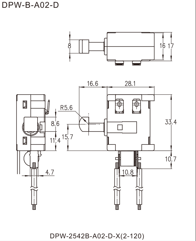 DPW系列是一款通用型的直流扳机开关,集成防尘快速刹车接点,应用于需要快速刹车的直流充电式手持电动工具,如:充电式电圆锯、充电式往复锯、充电式电链锯等。