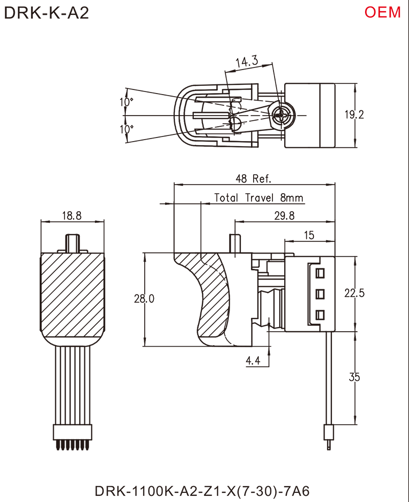 DRK series are one special type DC signal trigger switches, integrated dustproof (and waterproof), designed specially for used in Brushless DC power-tools or Gardening Tools such as: Brushless Cordless Drills, Brushless Cordless Hammers, Brushless Cordless Screw Drivers, Brushless Cordless Impact Wrenches, Brushless Cordless Blowers, etc.