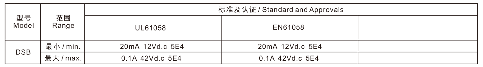 →最大电流 Max. current at 42Vd.c0.1A