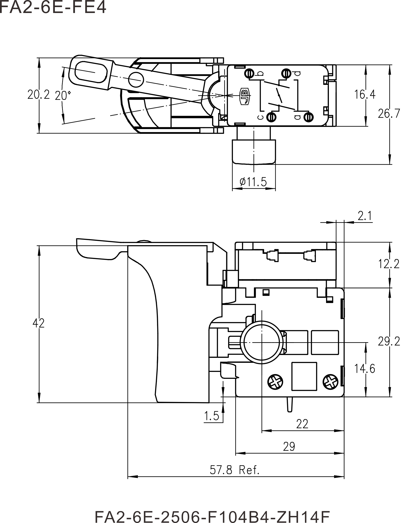 FA2-6E系列是一款通用型扳机电子调速开关,集成防尘功能,广泛应用于各类手持式电动工具,如:电钻、冲击钻、电锤、曲线锯、往复锯、搅拌器、抛光机和砂光机等。开关有多种换向盒可以选择,扳机、锁钮和拨杆可根据客户要求进行定制。