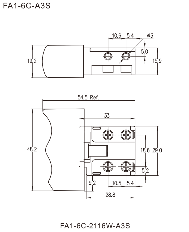 →2×接线柱端子 Pillar terminals φ=2.9mm