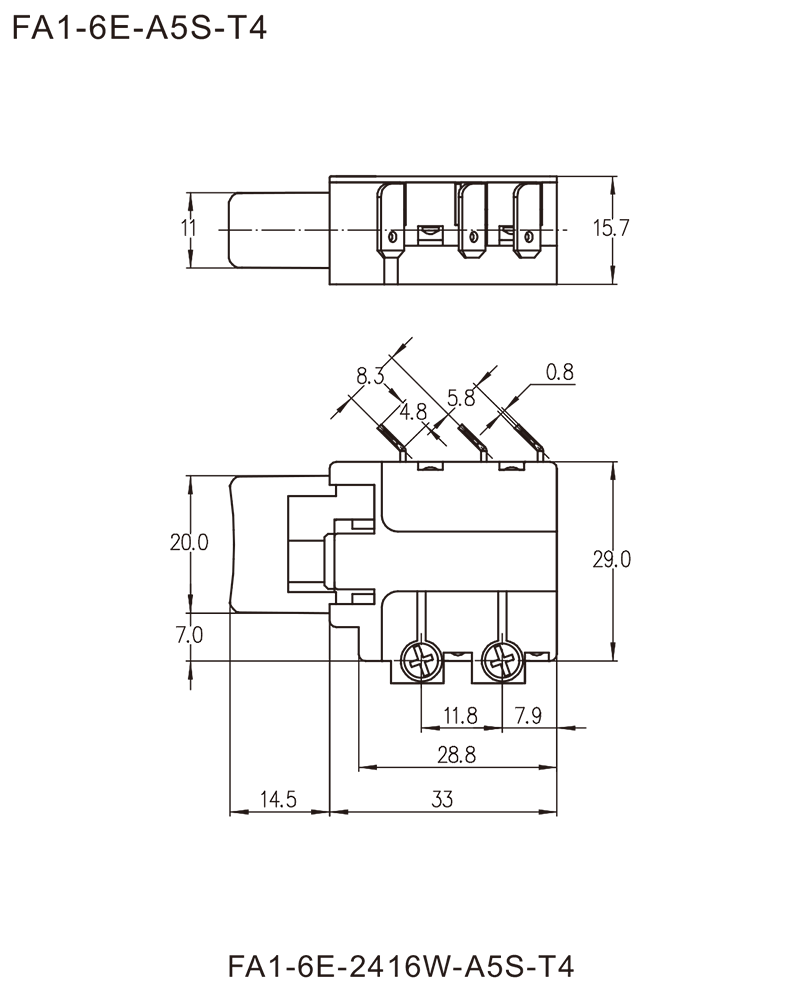 →插片端子 Plug-in terminals 2.8×0.8mm