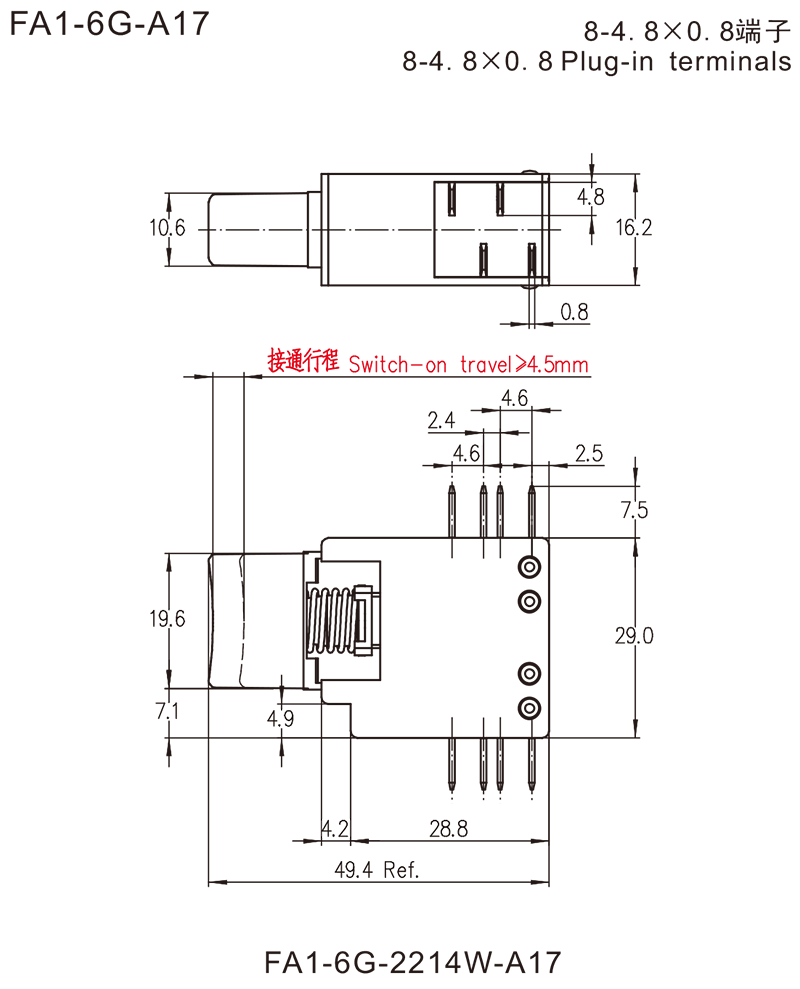 →插片端子 Plug-in terminals 4.8×0.8mm