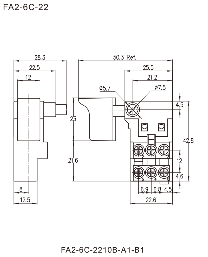 FA2-6C系列是一款通用型的扳机开关,集成防尘功能,广泛应用于各类电动工具,如:型材切割机、斜切锯、云石机、电圆锯、电锤、电木铣、砂带机、砂光机、电刨等。