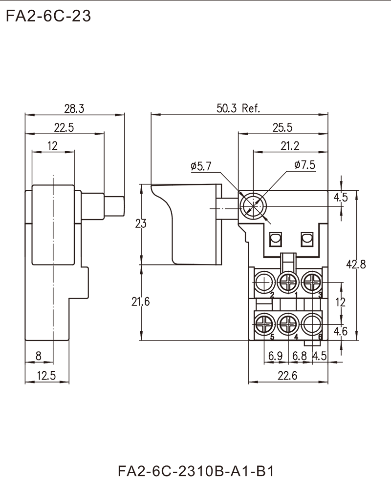 FA2-6C系列是一款通用型的扳机开关,集成防尘功能,广泛应用于各类电动工具,如:型材切割机、斜切锯、云石机、电圆锯、电锤、电木铣、砂带机、砂光机、电刨等。