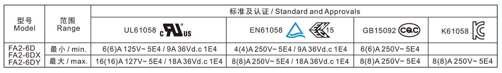 电气参数和认证 Electric Rating and Certification