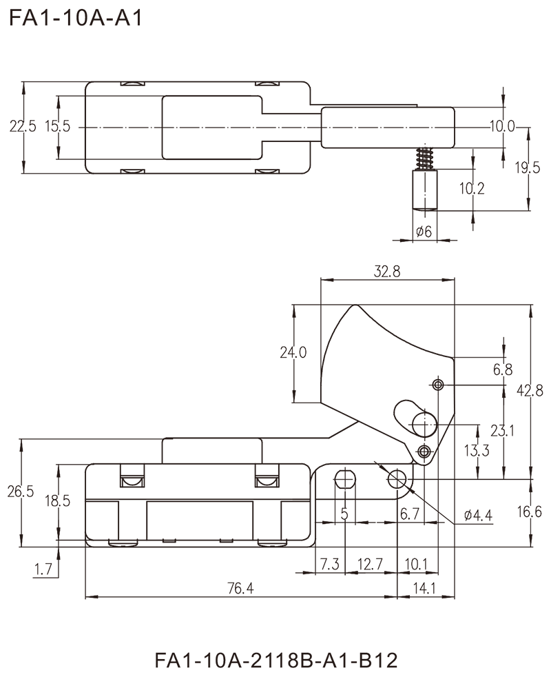 FA1-10A series are general type high rated trigger switches,integrated dustproofwith snap-action structure, for used in high rated bench top or portable power-tools such as Cut-off Machines,Miter Saws, 150mm, 180mm and 230mm Large Angle Grinders, Polishers, Circular Saws, Rotary Hammers, Demolition Hammers, Electrics Chain Saws, etc.
