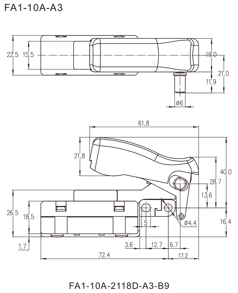 FA1-10A series are general type high rated trigger switches,integrated dustproofwith snap-action structure, for used in high rated bench top or portable power-tools such as Cut-off Machines,Miter Saws, 150mm, 180mm and 230mm Large Angle Grinders, Polishers, Circular Saws, Rotary Hammers, Demolition Hammers, Electrics Chain Saws, etc.