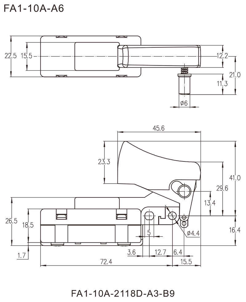 ◆FA1-10A series are general type high rated trigger switches,integrated dustproof, with snap-action structure, for used in high rated bench top or portable power-tools such as Cut-off Machines,Miter Saws, 150mm, 180mm and 230mm Large Angle Grinders, Polishers, Circular Saws, Rotary Hammers, Demolition Hammers, Electrics Chain Saws, etc.