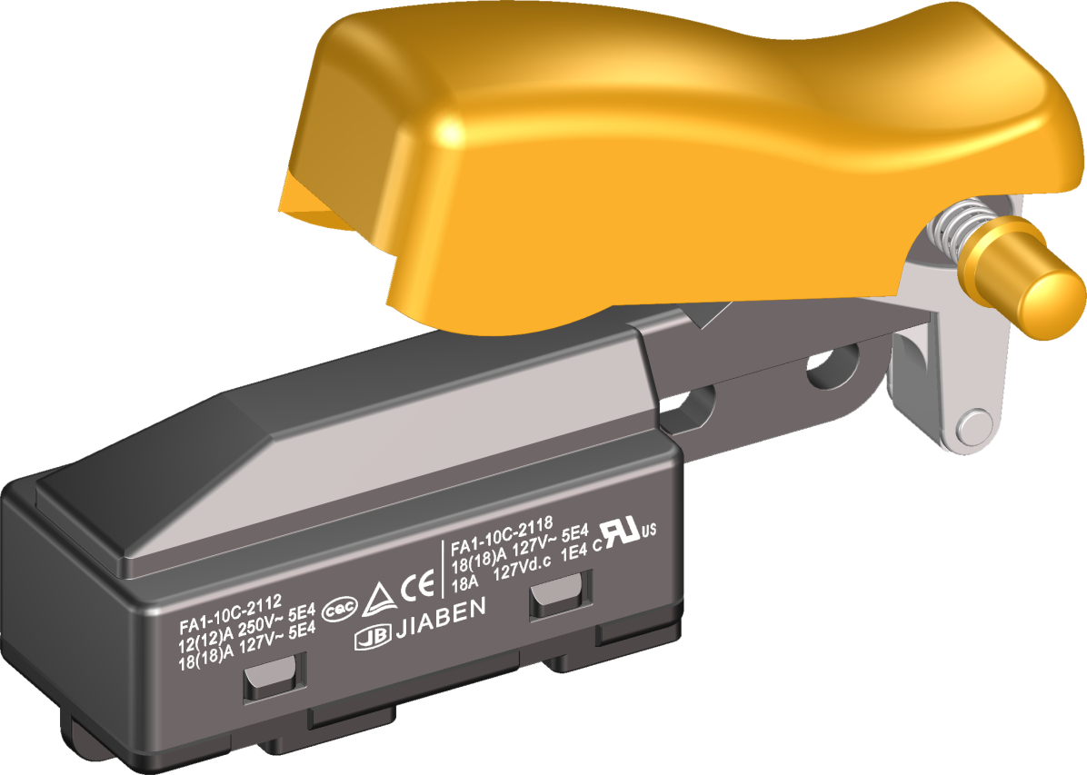 FA1-10C, FA1-11 series are general type high rated trigger switches, integrated dustproofwith snap-action structure, for used in high rated bench-top, portable power-tools and gardening tools such as Cut-off Machines, Miter Saws, 150mm, 180mm and 230mm Large Angle Grinders, Polishers, Circular Saws, Rotary Hammers, Demolition Hammers, Electric Chain Saws, etc.