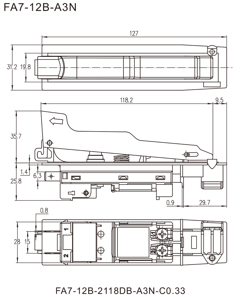 →2×插片端子 Plug-in terminals 6.3×0.8mm
