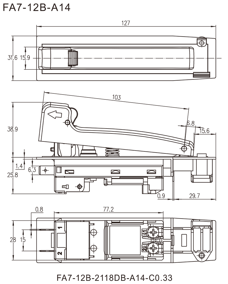 →2×插片端子 Plug-in terminals 6.3×0.8mm