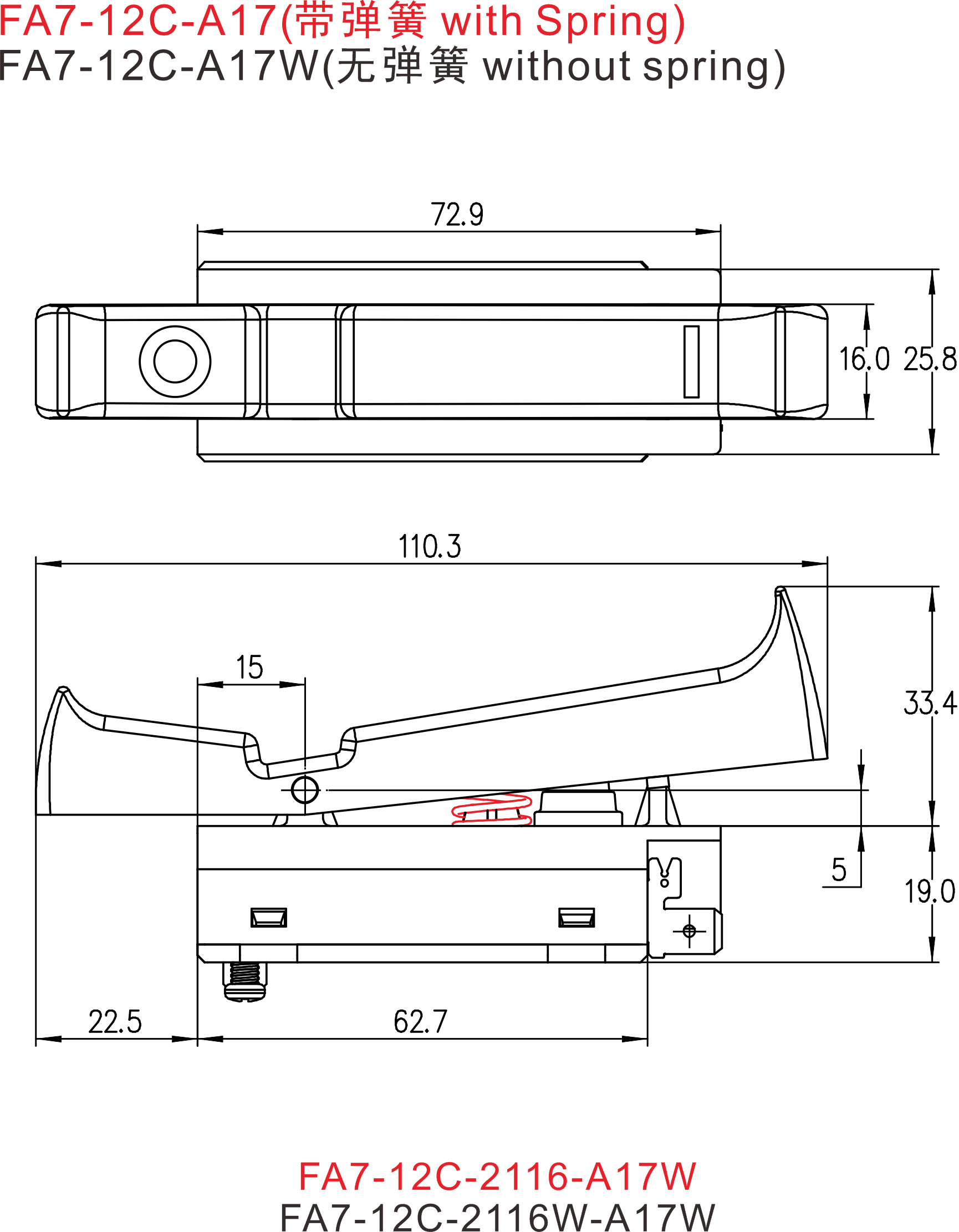 FA7-12C系列是一款专用型的大电流扳机开关,集成防尘功能,内部为快速动作结构,广泛应用于各类的电动工具,如:型材切割机,斜切锯(介铝机), 125和150中角磨,电锤,电镐等.有超过10种主体和扳机可供选择,也可按照客户要求定制.