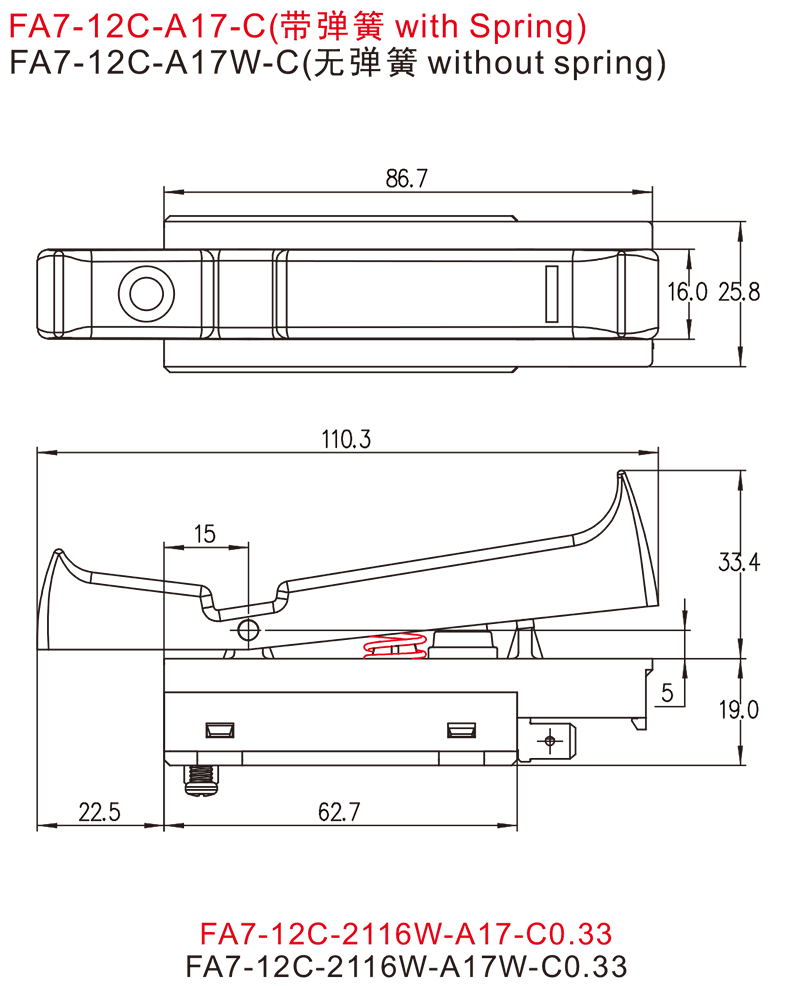 FA7-12C系列是一款专用型的大电流扳机开关,集成防尘功能,内部为快速动作结构,广泛应用于各类的电动工具,如:型材切割机,斜切锯(介铝机), 125和150中角磨,电锤,电镐等.有超过10种主体和扳机可供选择,也可按照客户要求定制.