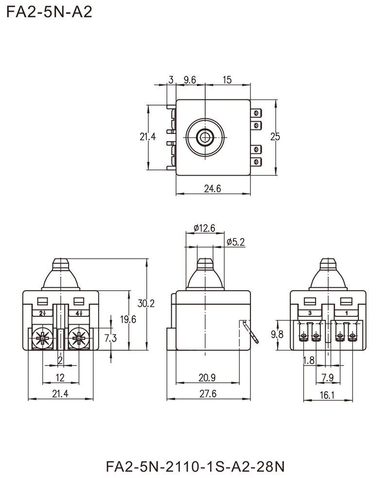 FA2-5/FA2-5N series are general type push-button switch, integrated dustproof, commonly for used in portable heavy dust power-tools such as 100mm, 125mm and 150mm Angle Grinders, Polisher Grinders, Die Grinders, Sanders, etc.