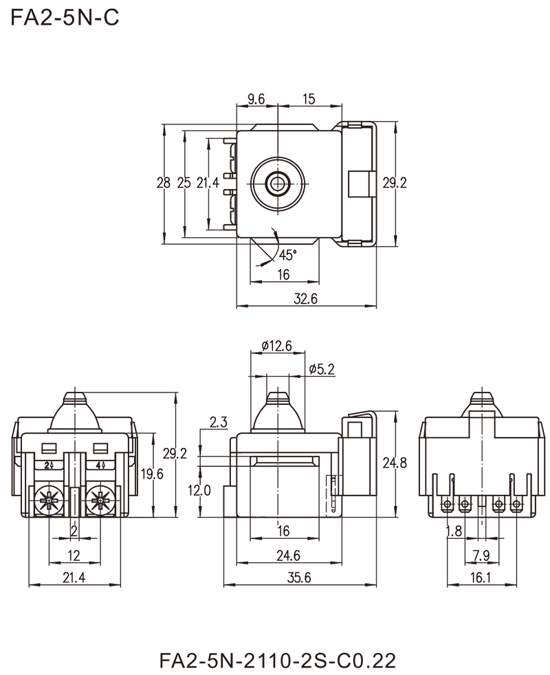 FA2-5/FA2-5N series are general type push-button switch, integrated dustproof, commonly for used in portable heavy dust power-tools such as 100mm, 125mm and 150mm Angle Grinders, Polisher Grinders, Die Grinders, Sanders, etc.
