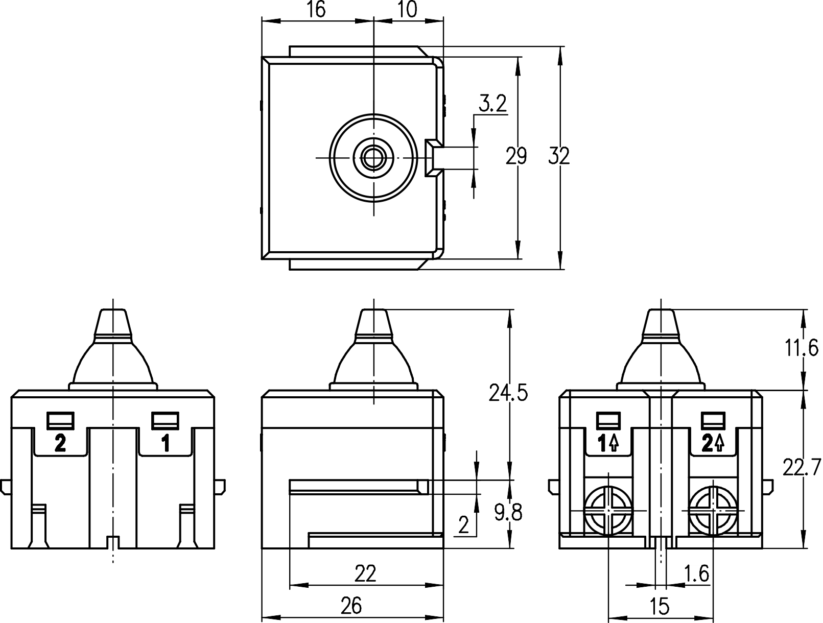 ◆FA2-5DN系列是一款专用型的按钮开关,集成防尘功能,内部为快速动作结构,应用于各类手持式电动工具,如:125和150角向磨光机、抛光机等。