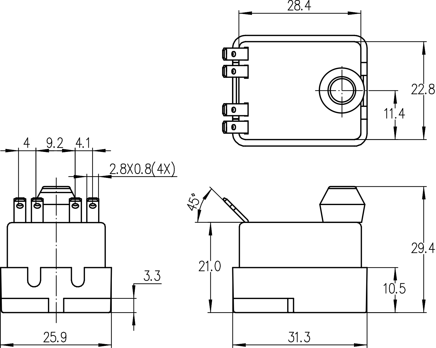 →可选接线柱端子 Optional Pillar terminals φ=2.8mm