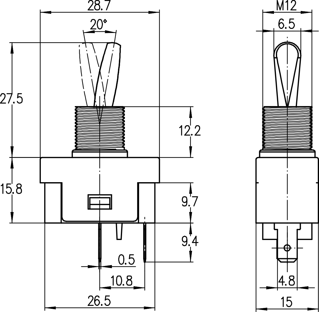→插片端子 Plug-in terminals 4.8×0.5mm