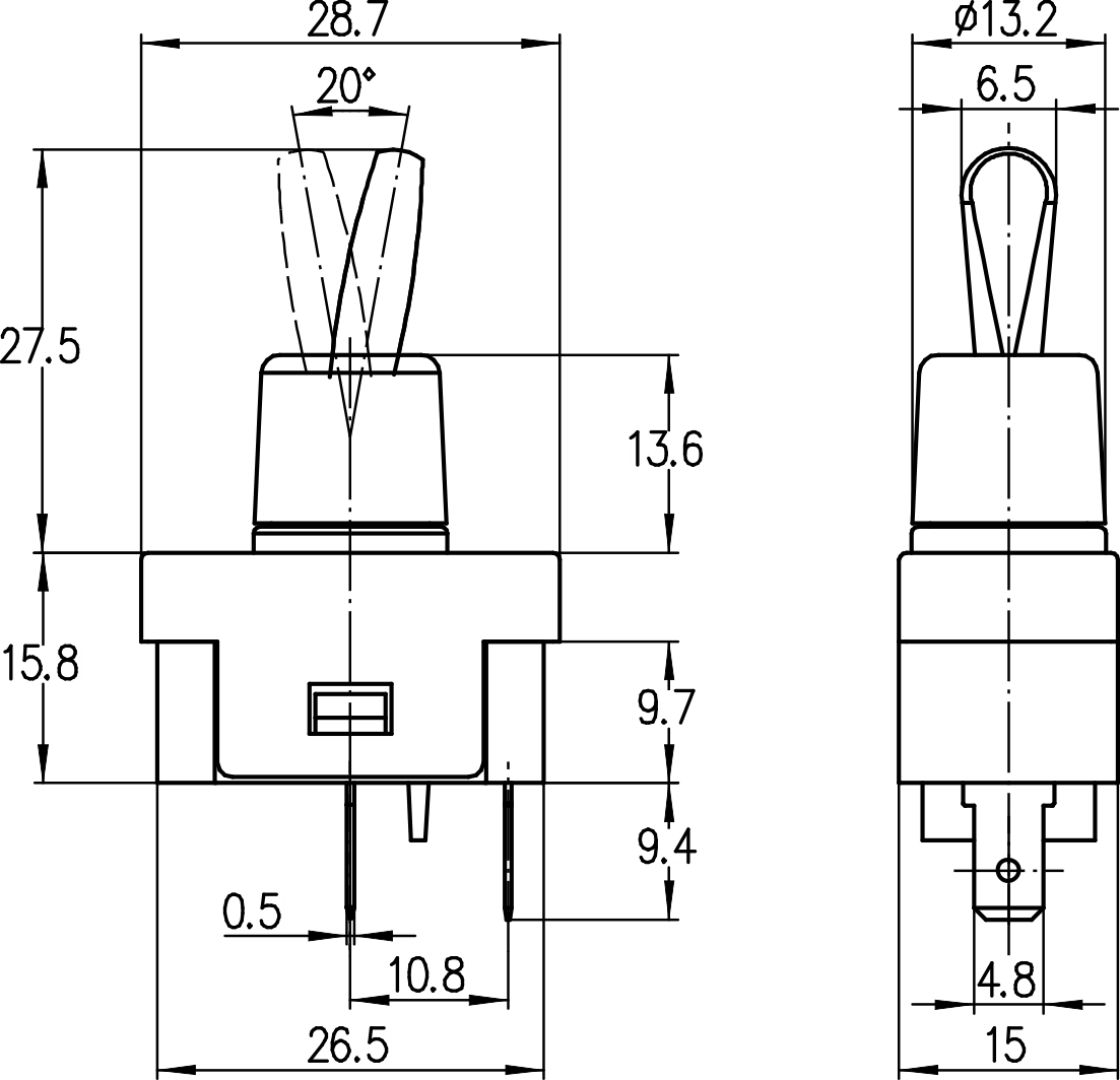 →插片端子 Plug-in terminals 4.8×0.5mm