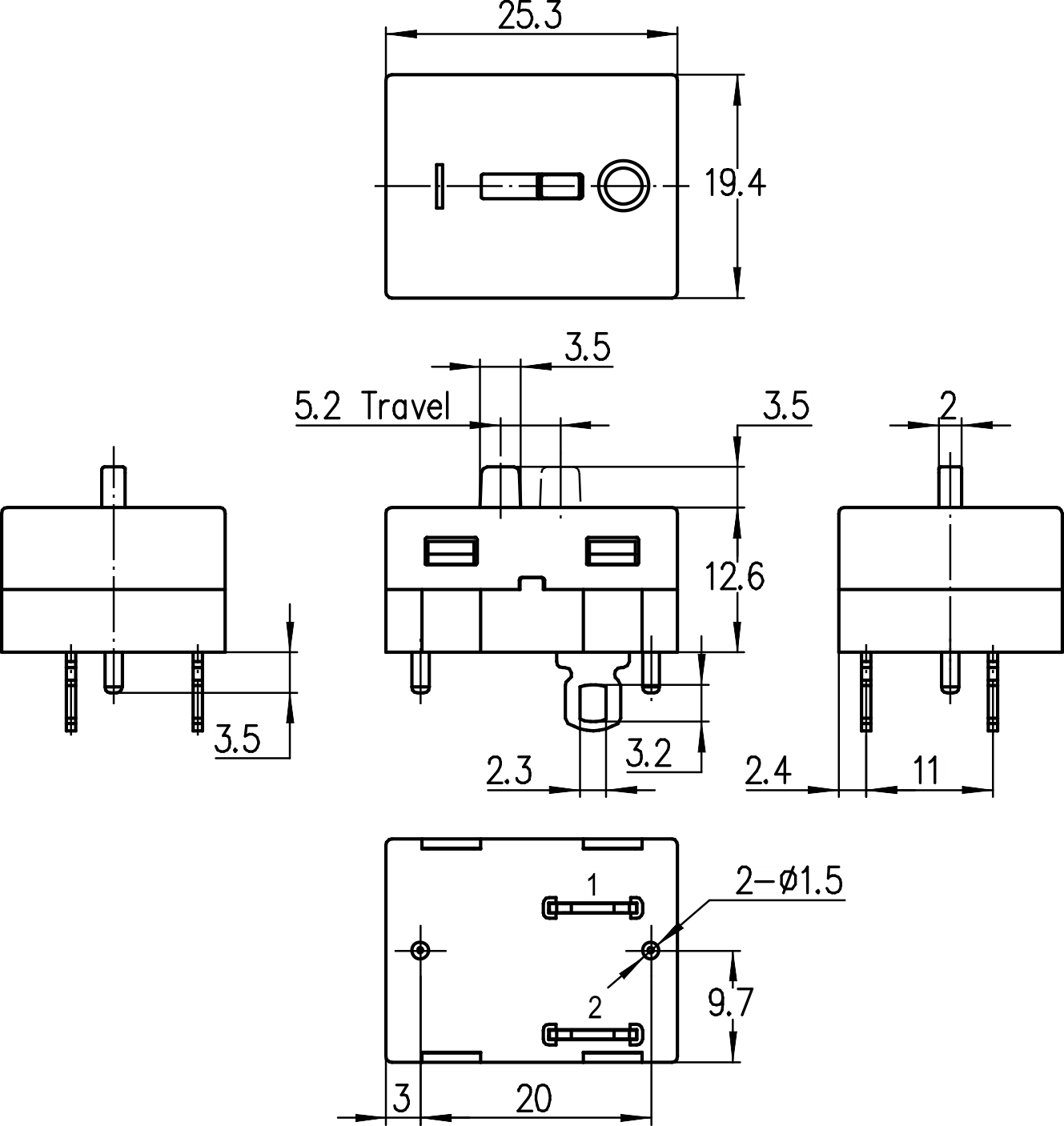 →单极单掷 SPST (Single Pole Single Throw)