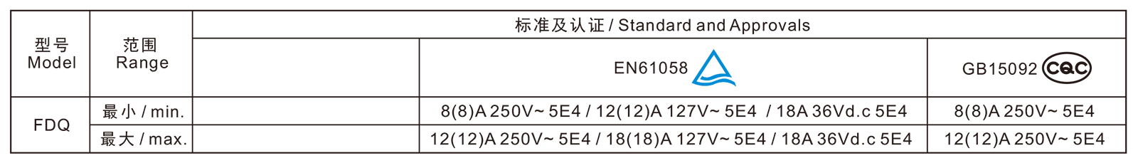 电气参数和认证 Electric Rating and Certification