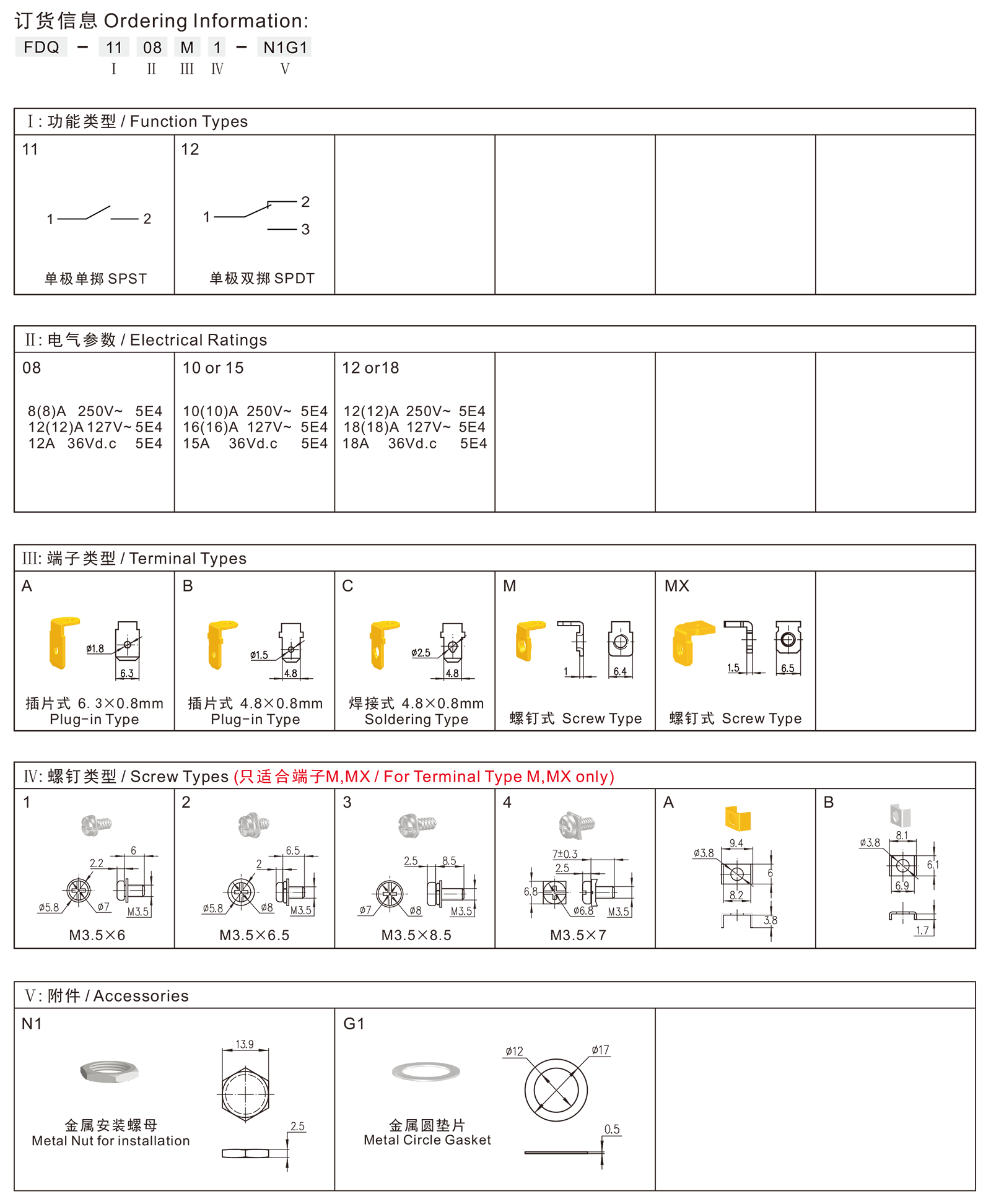 端子类型Terminals