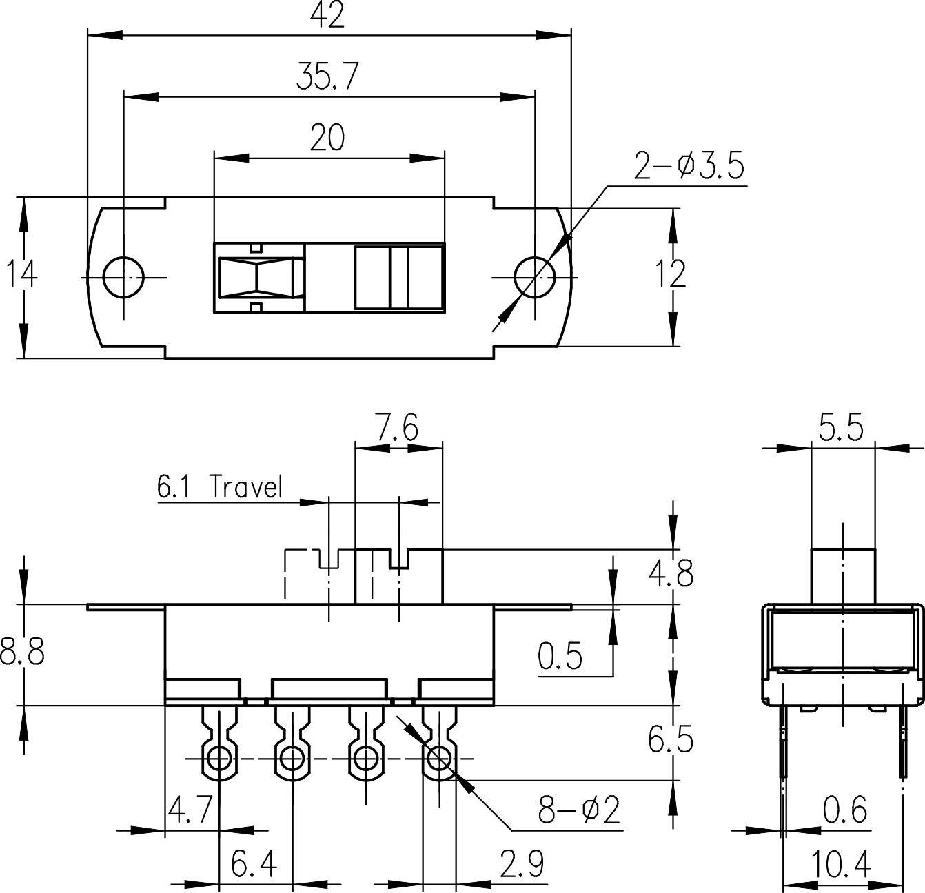 →焊接端子 Solder terminals 2.7×0.6mm