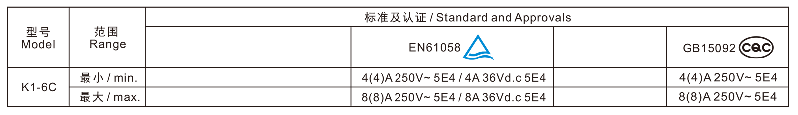 →电气耐久寿命 Electrical life endurance≥5E4