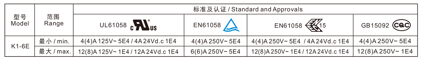 电气参数和认证 Electric Rating and Certification